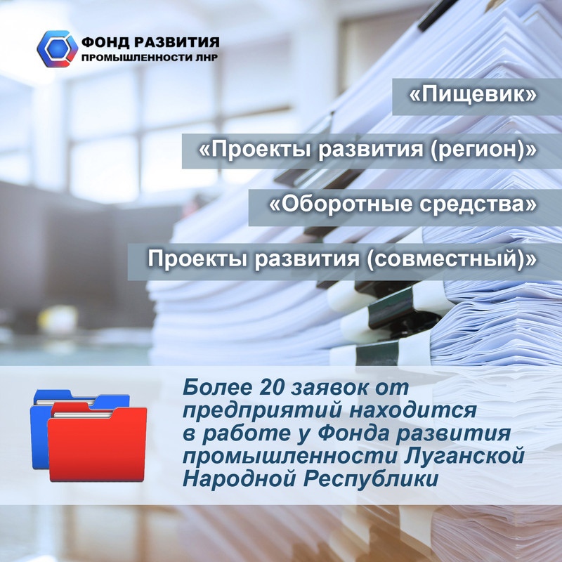 Более 20 заявок от предприятий Республики находится в работе у Фонда развития промышленности ЛНР. Об этом сообщила директор регионального Фонда Виолетта Воробьева.