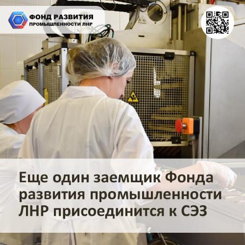 Луганское предприятие-пищевик, которое в этом году получило льготный заем от ФРП ЛНР, сможет присоединиться к СЭЗ. Такая возможность появилась у завода после одобрения его заявки Правительством Республики.