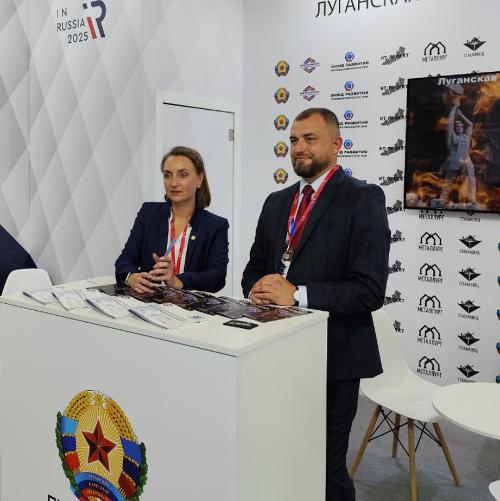 На нашем стенде представлен промышленный потенциал Луганщины. Есть интерактивная панель, информационные буклеты. Демонстрируются видеоролики о работе более 70 ведущих предприятий региона в сферах металлургии, машиностроения, производства стройматериалов, легкой и химической промышленности.