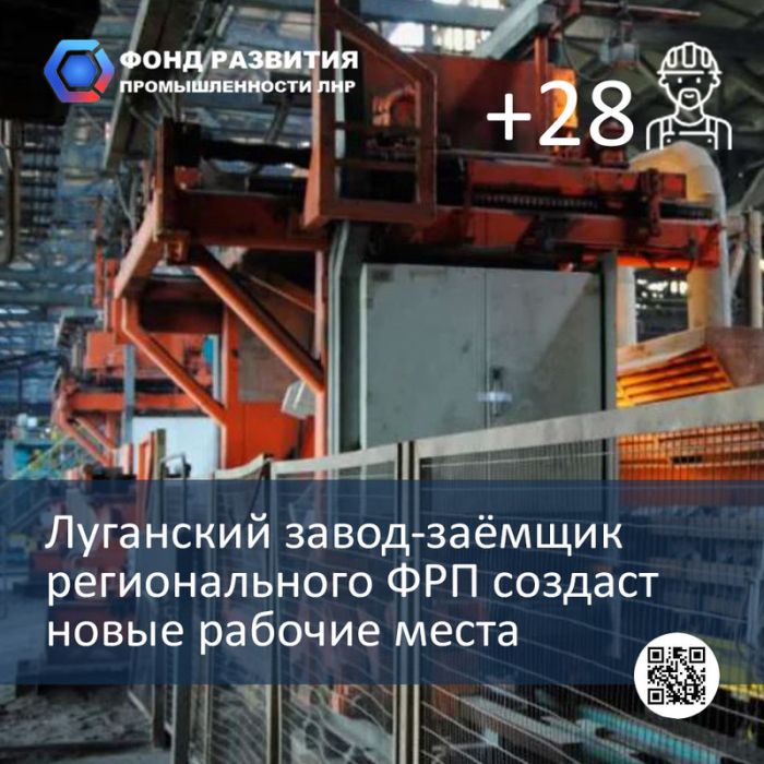 28 новых рабочих мест создадут на заводе в Луганске в рамках проекта, который профинансировал региональный Фонд развития промышленности.