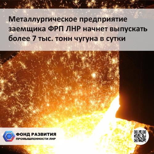 Металлургическое предприятие, входящее в состав компании-заемщика Фонда развития промышленности ЛНР, планирует в 2025 году существенно увеличить объемы производства и выпускать более 7 тыс. тонн чугуна в сутки.