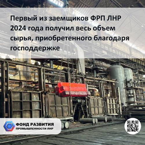 Благодаря поддержке регионального Фонда развития промышленности луганский завод – член Союза машиностроителей России приобрел стальных заготовок на 100 млн руб. Он стал первым среди заемщиков 2024 года, кто уже получил сырье в полном объеме.