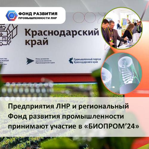 Представители 5 предприятий ЛНР и регионального Фонда развития промышленности принимают участие в Международном форуме «БИОПРОМ: промышленность и технологии для человека», который стартовал сегодня в Краснодарском крае.