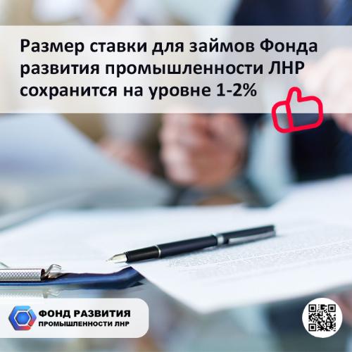 В 2025 году Фонд развития промышленности ЛНР сохранит размер процентной ставки по всем своим программам для предприятий, предоставляющих банковскую гарантию в качестве обеспечения займа. Соответствующее решение было принято Наблюдательным советом Фонда.