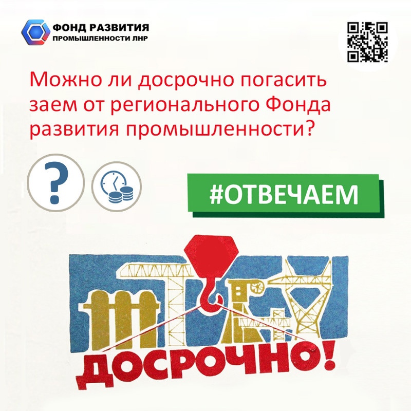 Фонд развития промышленности ЛНР предоставляет промышленным предприятиям льготные займы на срок от 3 до 7 лет, но выданные средства можно вернуть и раньше. Досрочно погасить заем можно на любом этапе реализации проекта без применения штрафных санкций. Соответствующая возможность прописана в самом договоре заемного финансирования, который заключается между Фондом и предприятием.