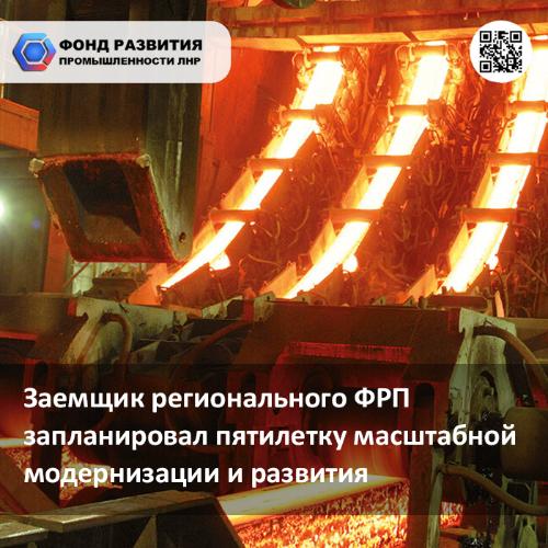 Металлургический комбинат, входящий в состав компании-заемщика Фонда развития промышленности ЛНР, запланировал на ближайшие 5 лет модернизацию существующих мощностей и строительство новой производственной инфраструктуры. Об этом сообщили в Едином институте пространственного планирования РФ (ЕИПП РФ).